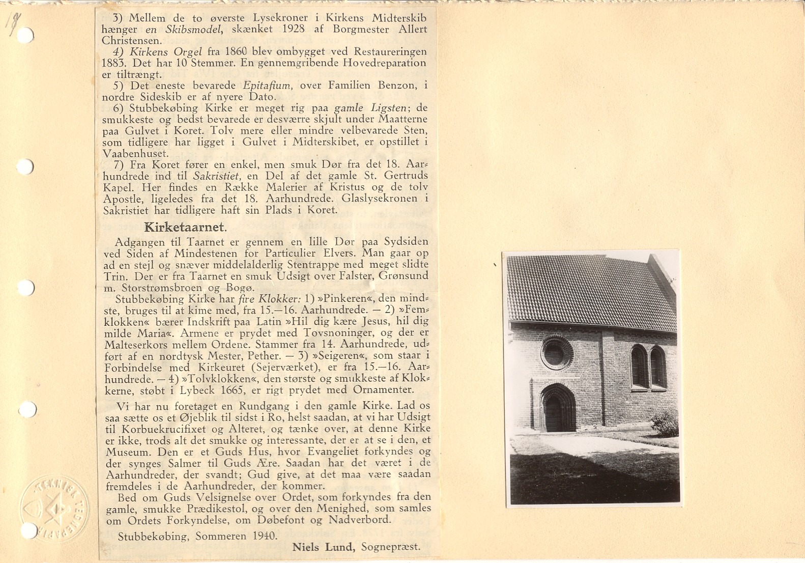 Stubbekøbing, Sommeren 1940. Niels Lund, Sognepræst. |