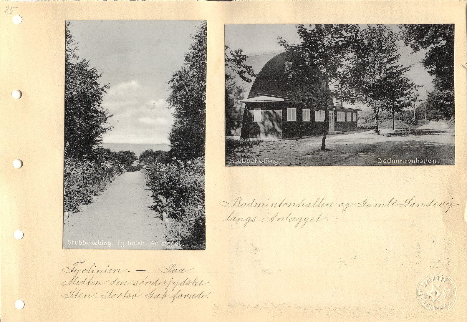 Teksten på højre billede: Stubbekøbing. Badmintonhallen.
